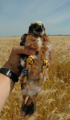 Farvemærket nyudfløjen unge af Hedehøg. Foto og copyrigth Lars Maltha