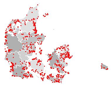 • Lokaliteter med observationer af flokke med mere end 25 gæs i januar:
